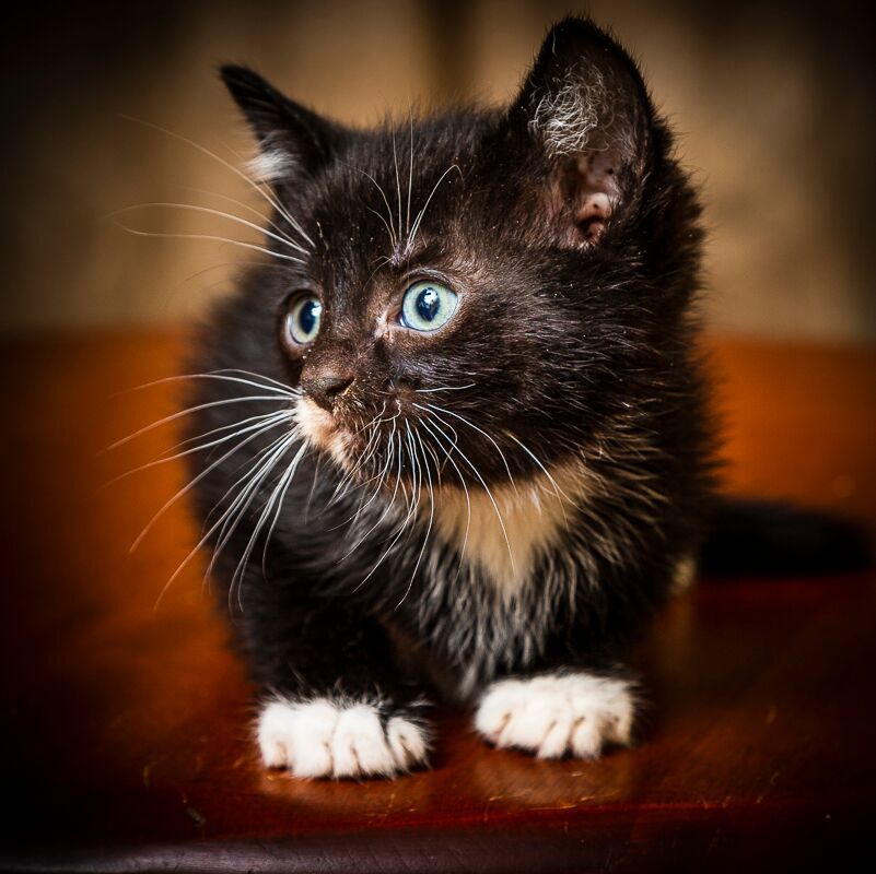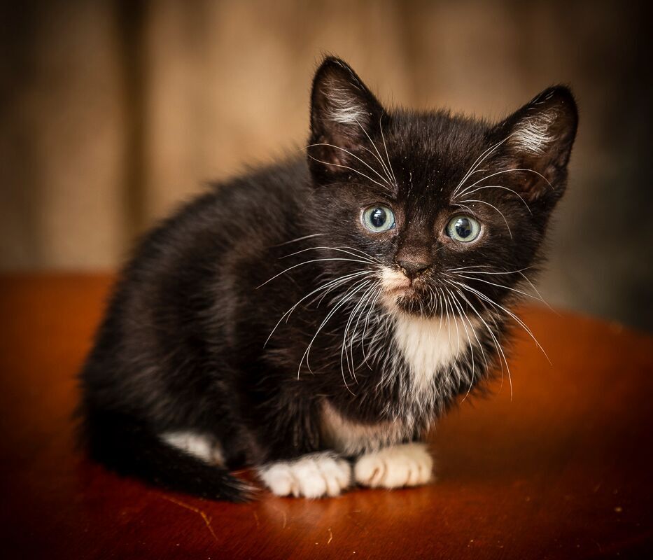 Charlie is a male tuxedo kitten born the end of March 2018. All of his siblings were adopted and he was left behind. Charlie was a Momma’s boy who clung to his feral mom until she was separated from him. He is now more outgoing but still a little skittish with people he doesn’t know. Charlie will be a love for someone who has a little patience to work with him more. He is rambunctious and loves playing with other kittens and cats. He would probably do best in a quiet adult home as a companion to another cat or kitten.