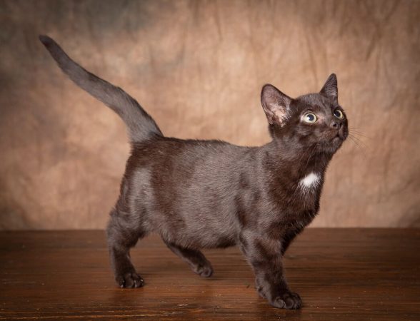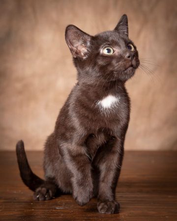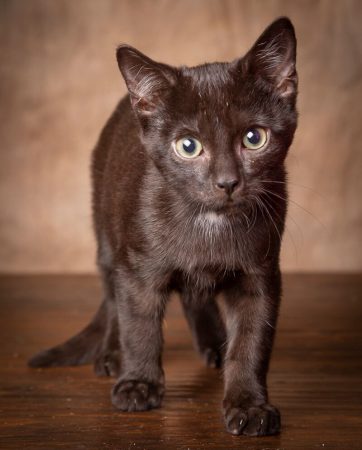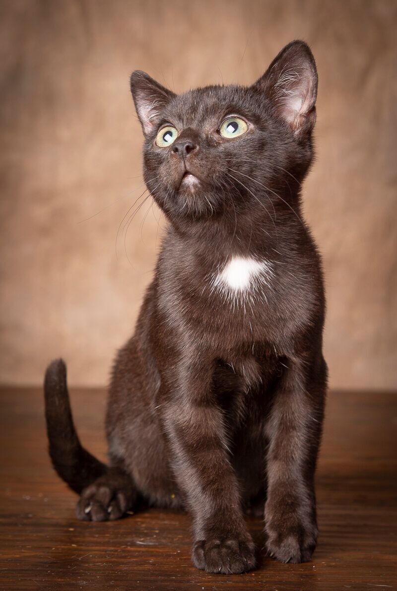 Chubby is a male black short hair kitten born approximately beginning of August 2018. He is very petite and remains the size of a kitten half his age. His little short legs do not allow him the advantage of jumping up on counters like many cats can but he will climb his way into mischief. Chubby loves to cuddle with big dogs and enjoys playing with other kittens and cats. He is sweet, outgoing and the purrfect family pet.