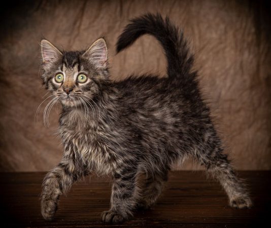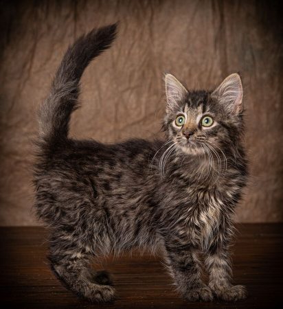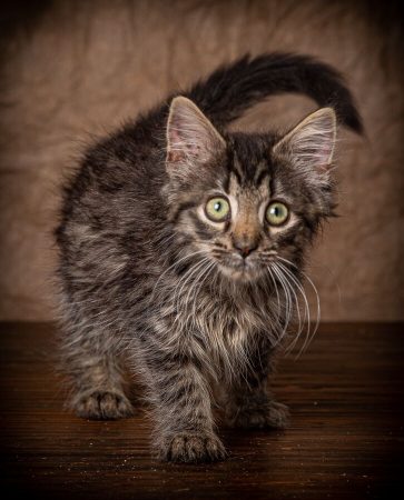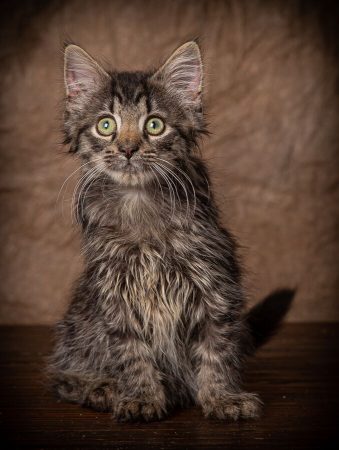 Roary is an attractive, female, tiger Maine Coon mix kitten born beginning of May 2019. She was found abandoned by her mother and hand raised in a foster home since 4 weeks old. Roary is extremely high energy, sweet, curious and talkative kitten (hince the name Roary). She is outgoing and enjoys attention from people when she isn’t running around at high speed. She would do well in an active household with kids. However, Roary prefers to be the queen of her castle and would not do well with other cats. With proper introductions, she may do fine in a household with dogs. Roary will entertain you with her antics and grace your home with her beauty.